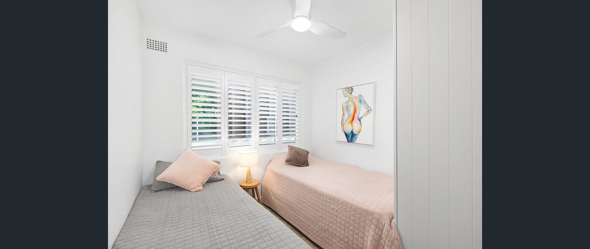 The main bedroom boasts a queen bed with built ins and the second bedroom has 2 single beds with built ins – these rooms offer a welcome retreat after a day exploring the Manly area and surrounds.