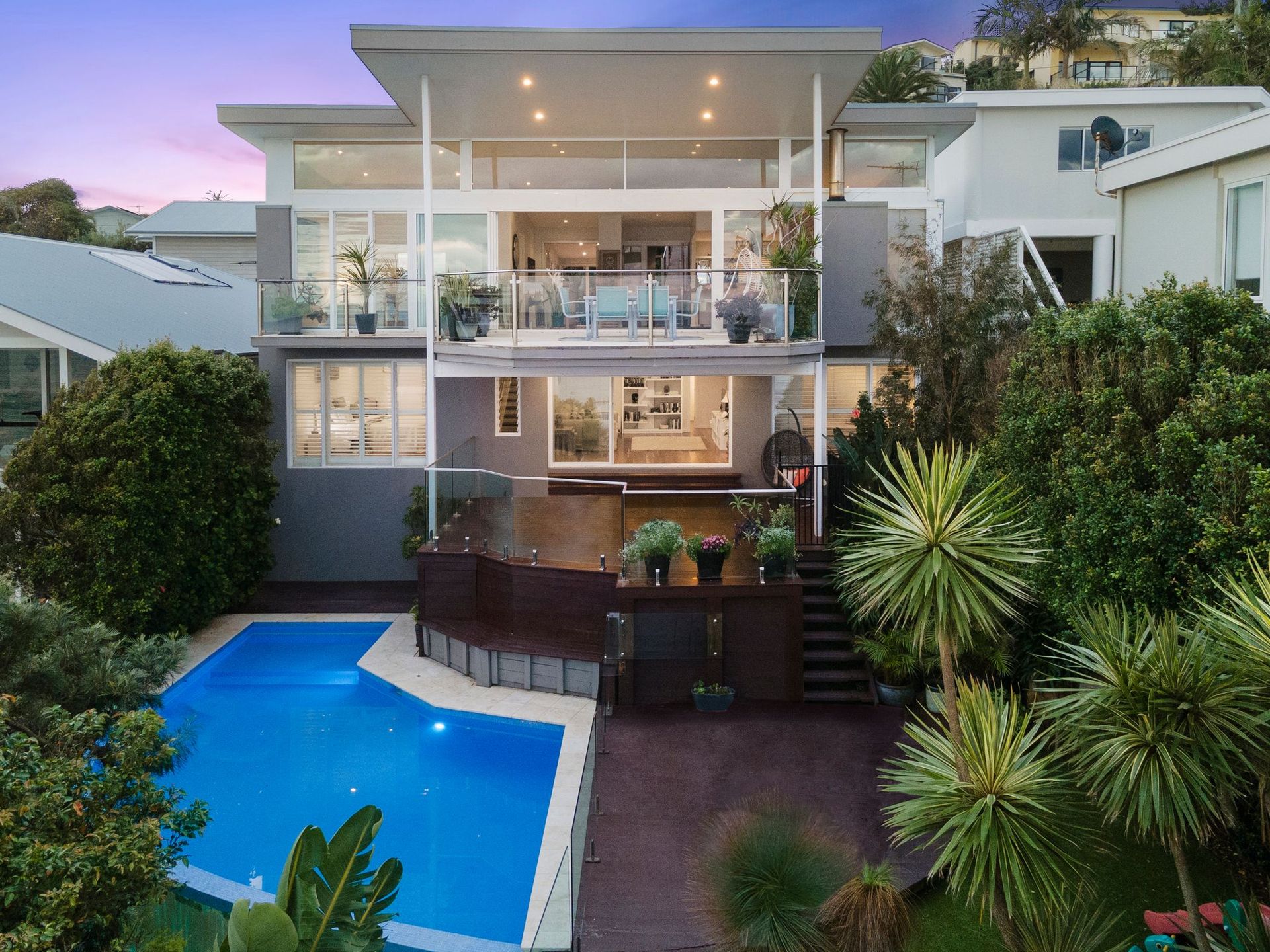 A discreet entrance with off street parking for at least 3 cars, provides little sense of the magnificent home below. A beautifully tiered garden leads to the front door which opens onto a 'great room' featuring high ceilings, a gas fireplace and expansive glass doors that slide away to bring the stunning ocean views over Bungan Beach into the home. Seamless indoor outdoor entertaining spaces provide ample room for a large number of guests and a wonderful feeling of space and light.
